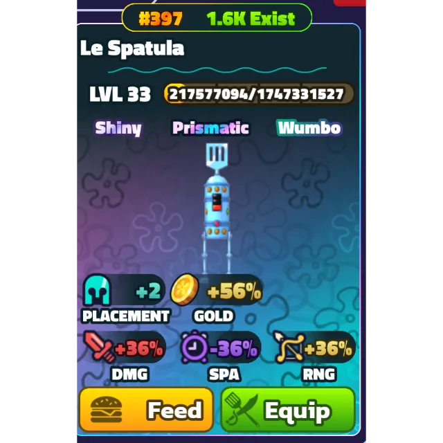 SHINY WUMBO LE SPATULA (GOLD SERIAL) LEVEL 33 - SPONGEBOB TOWER DEFENSE