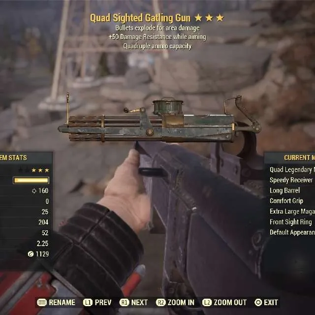 Quad Explosive 50 damage resistance while aiming Gatling Gun Max Level